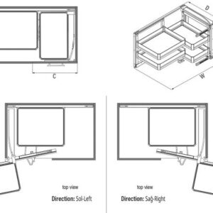 МОДЕЛ: S-3002 Шифра: 1428 – десна Димензии: 860-960х530х590-720 mm С: 450 mm
